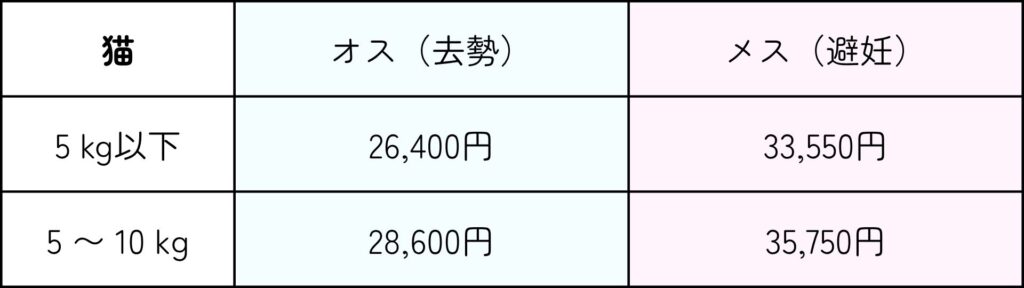 去勢手術は日帰り、避妊手術は1泊入院となります。