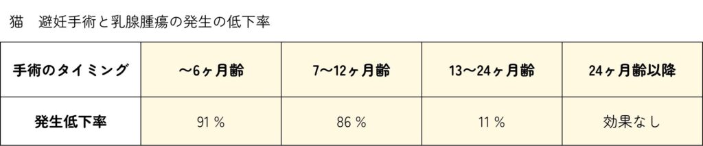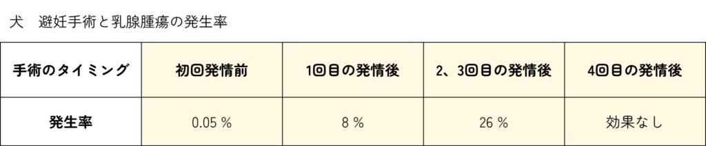 ・若齢時に避妊手術を行うと乳腺腫瘍の発生率が低下するといった報告があります。